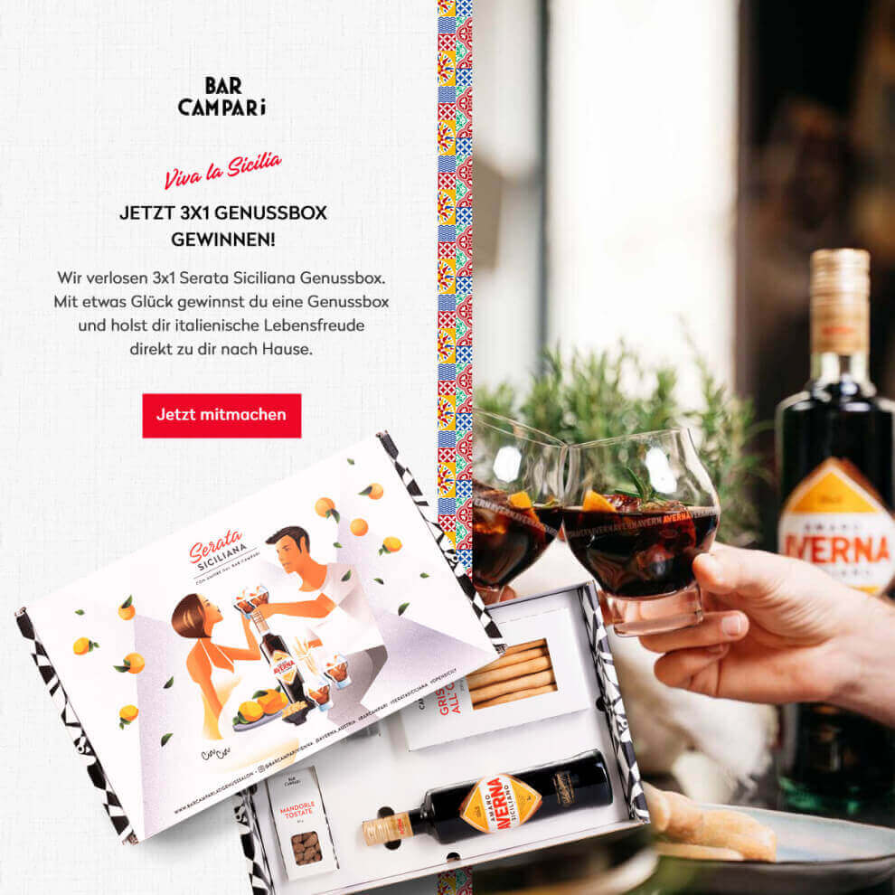 Über das Jahr verteilt werden regelmäßig neue Gewinnspiel Kampagnen erstellt bei denen unter anderem die exklusiven Aperitivo Italiano Boxen von Campari verlost werden.