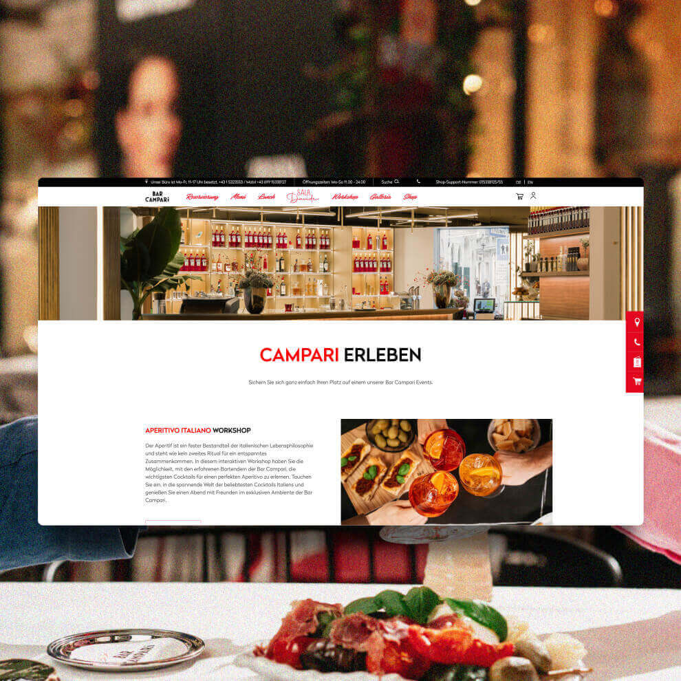 Zur Eröffnung der neuen Bar Campari im ersten Bezirk in Wien durften wir gemeinsam mit unseren Freunden von Medianomia OG für die Bar eine Corporate Webseite kreieren.