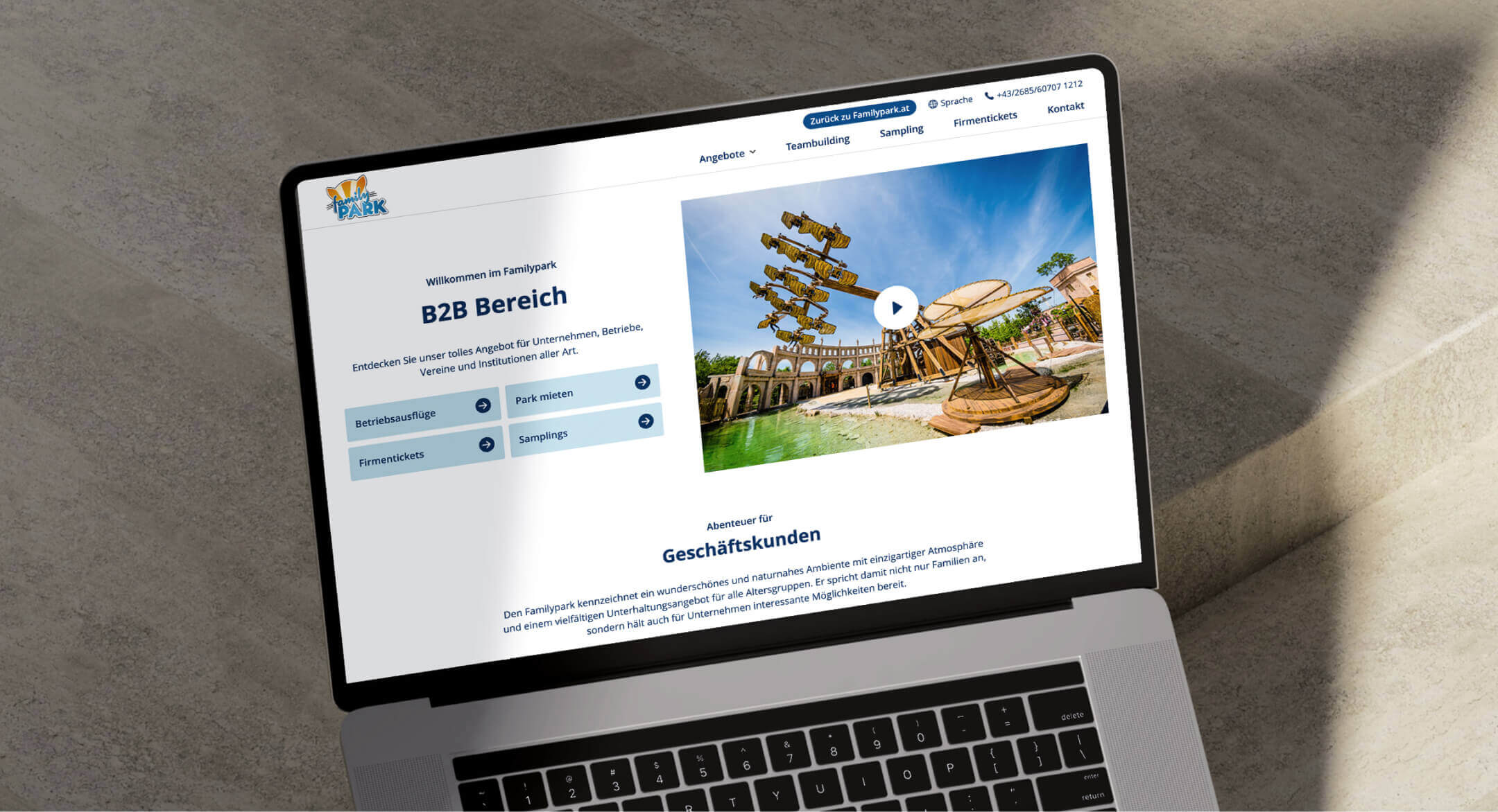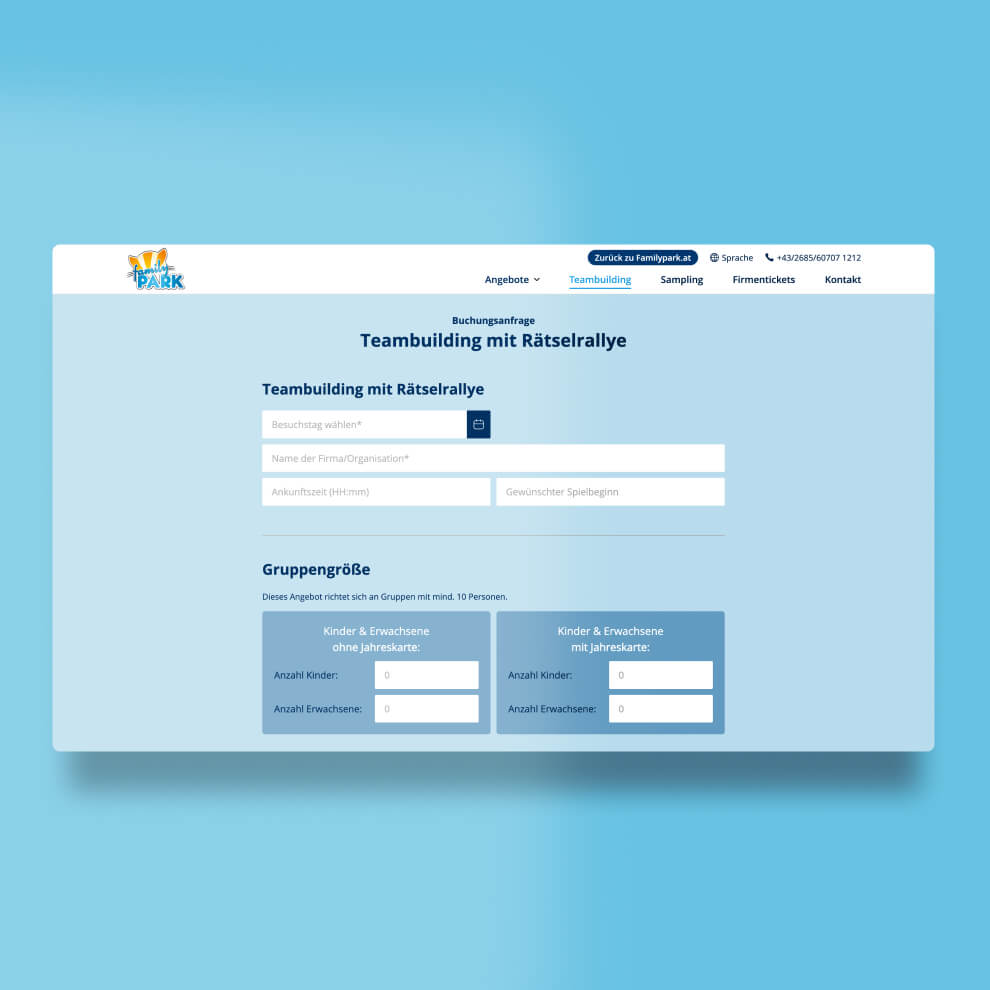 Der Familypark ist beliebt dafür ein Lächeln in die Gesichter aller Besucher:innen zu zaubern. 2022 durften wir die B2B Website für Familypark designen & umsetzen. Nicht nur Privatpersonen profitieren von dem tollen Angebot. Auch für Unternehmen bietet Familypark ein vielseitiges Angebot 🎠 Für die Website haben wir wiederverwendbare Content-Blöcke entwickelt, mit denen jede Seite sehr leicht gebaut werden kann. Als eigenständige Seite bietet die Website alle Informationen, übersichtlich für B2B Kunden, aufbereitet.