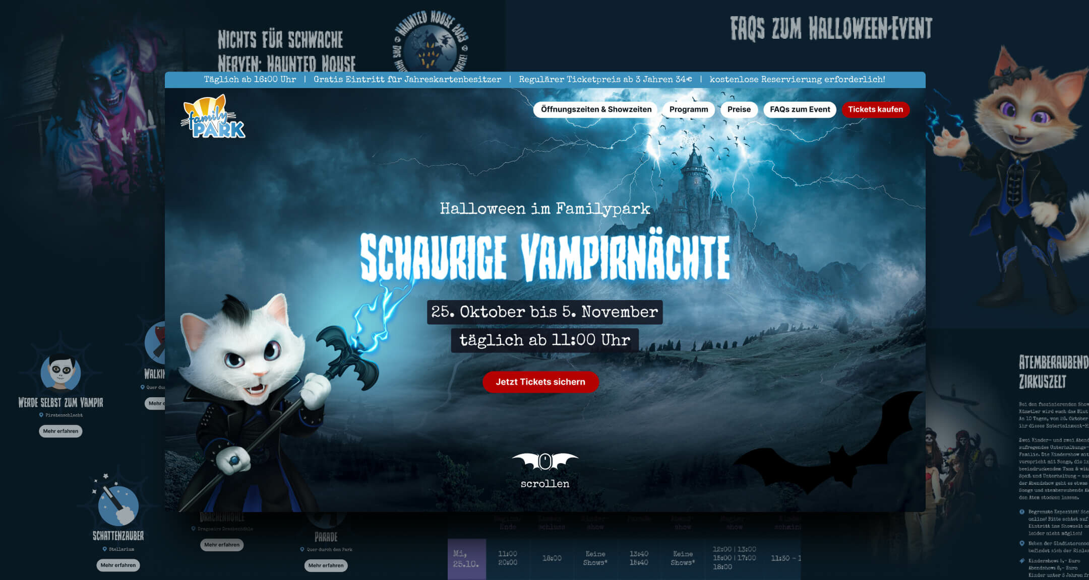 Bevor der Online-Adventskalender veröffentlicht wird, dürfen wir zu Halloween jedes Jahr die Website in ein gruseliges Ambiente verwandeln. Nicht nur online ist die Website zu Halloween einen Besuch wert. Vor Ort gibt es immer ein gruseliges Event, welches wir absolut empfehlen können 👻