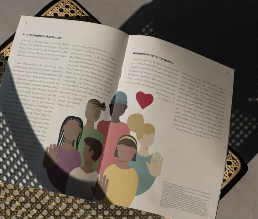 Der Rassismusbericht der GRA wird jedes Jahr auf einer eigenen Subseite Präsentiert. Zusätzlich haben wir noch ein PDF erstellt, welches für den Druck aufbereitet ist. Bei der Gestaltung haben wir die modular aufbereiten Illustration passend zu den jeweiligen Themen komponiert. Den Rassismusbericht findet ihr unter: