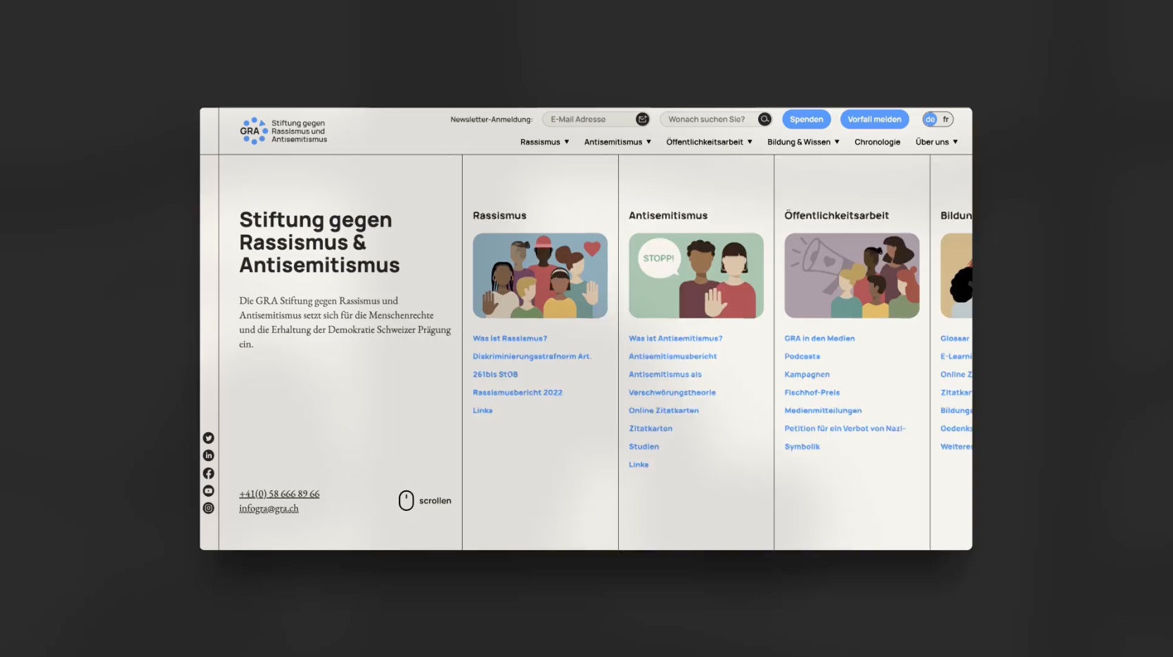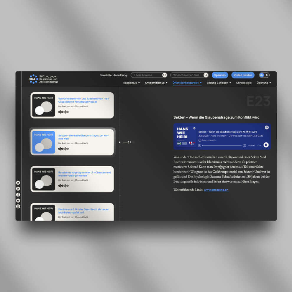 2023 gehört der Relaunch der GRA WordPress Website zu einem unserer absoluten Lieblingsprojekte 🫶 Alle Menschen sind frei und gleich an Würde und Rechten geboren! Die GRA Stiftung gegen Rassismus und Antisemitismus setzt sich für die Menschenrechte und die Erhaltung der Demokratie Schweizer Prägung ein.