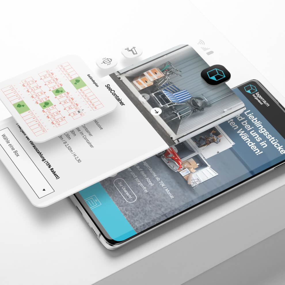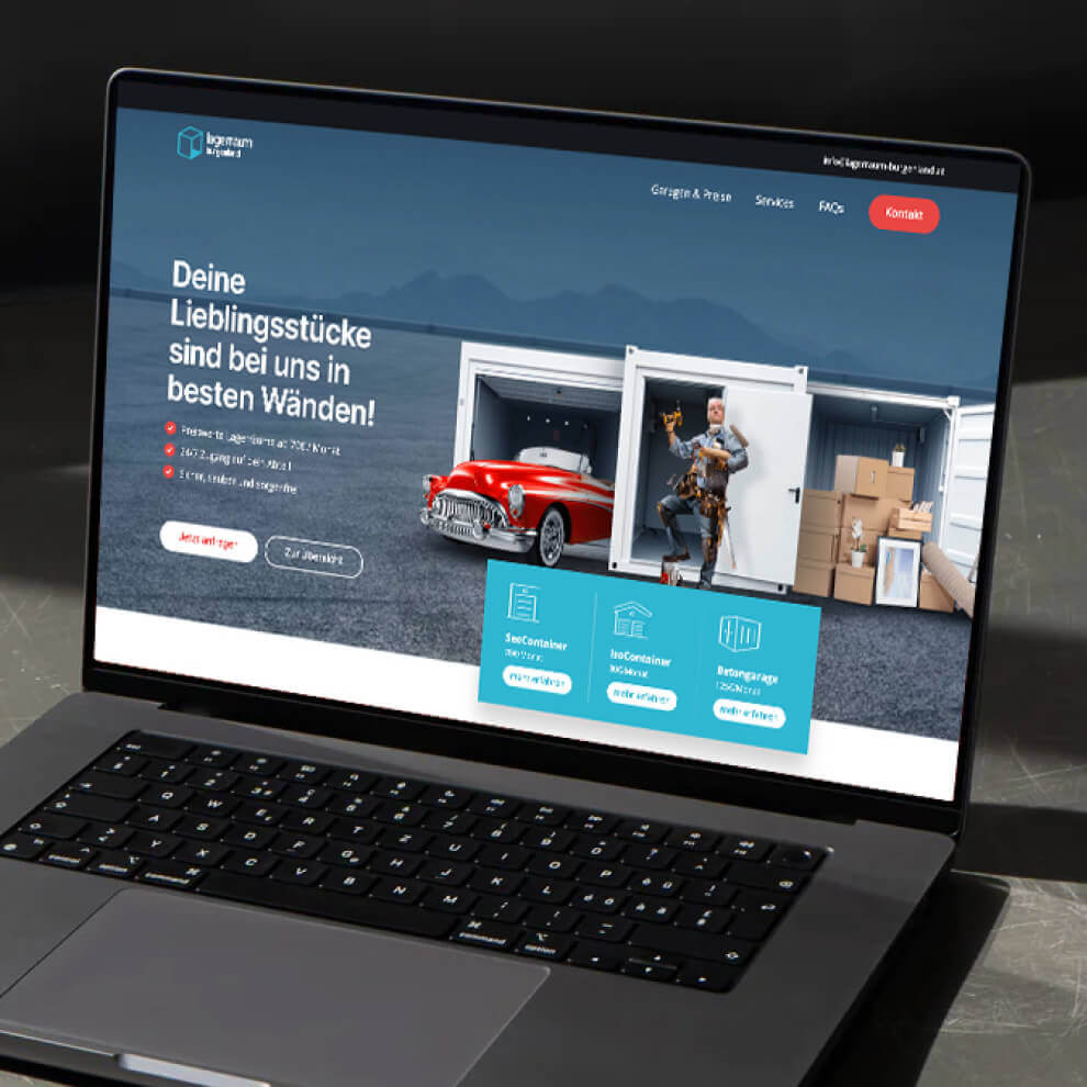 Für „Lagerraum Burgenland“ duften wir das Branding vornehmen sowie das Screendesign kreieren, welches wir im Anschluss mit WordPress umgesetzt haben. Die Website zeigt auf einem Blick welche Arten von Lagerräumen buchbar sind und wo es noch freie Plätze gibt. Zu jedem Lagerraum gibt es einen Slider mit hilfreichen Bildern zur Einschätzung des Volumens.