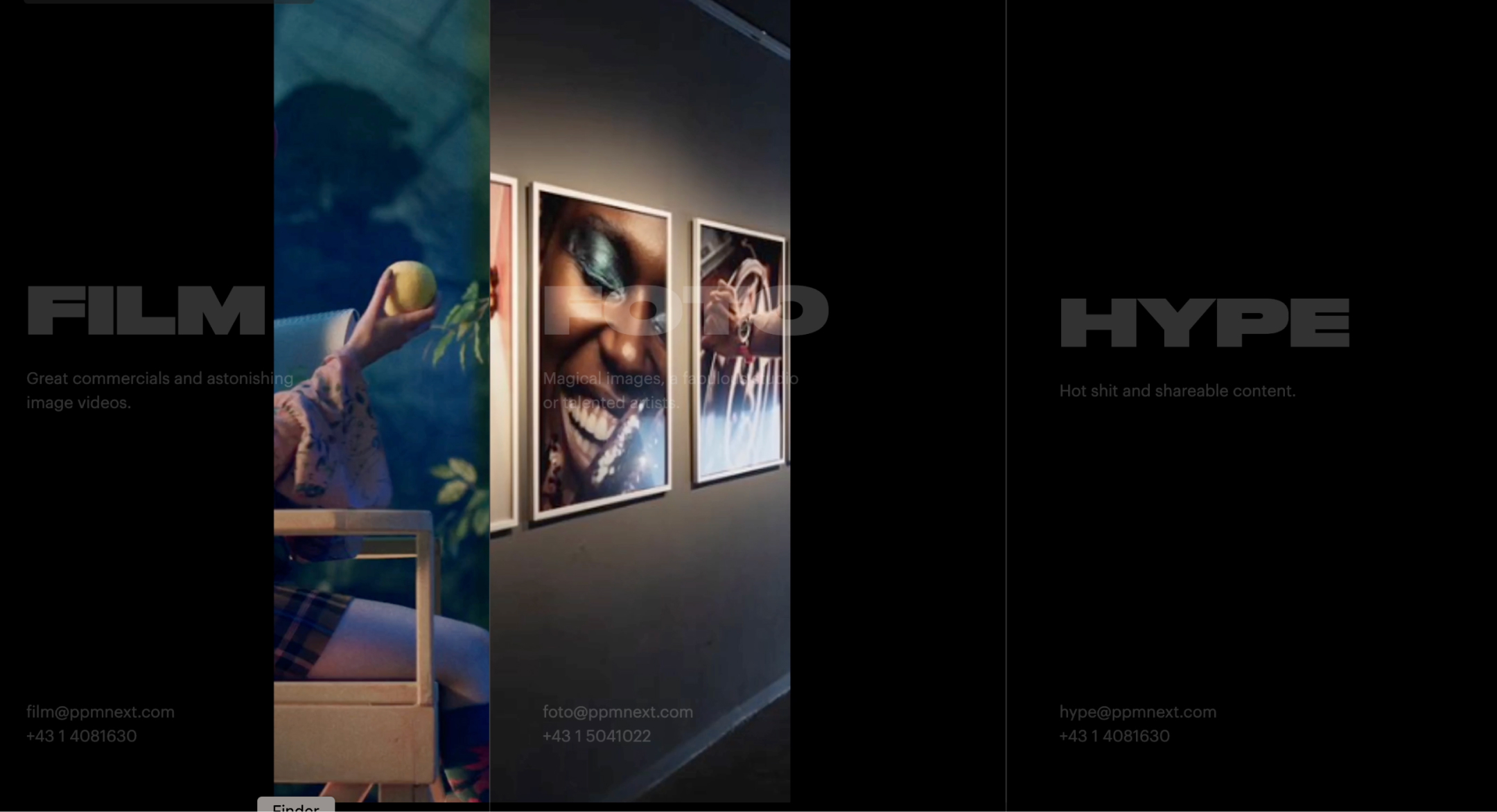 Für PPMNEXT_ durften wir 2023 die Website relaunchen. Die größte Herausforderung dabei war die Abbildung der neuen Unternehmensstruktur in Form von 3 Units. PPMNEXT_ gliedert sich in 3 Unternehmen für die Sparten Film, Foto und Hype und jede der Units hat unterschiedliche Anforderungen an die Website. Im Frontend war es wichtig einfach & zentral zwischen den Units wechseln zu können.