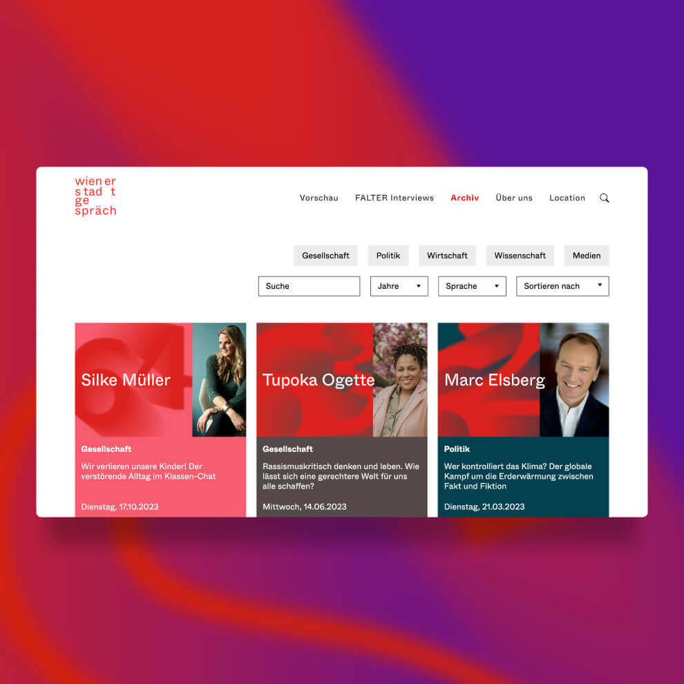 2023 durften wir bei dem Relaunch der Website für „Wiener Stadtgespräch“ mitwirken und die Programmierung von Logiken und Stylings übernehmen. Das Projekt ist ein Paradebeispiel für tolle Zusammenarbeit.